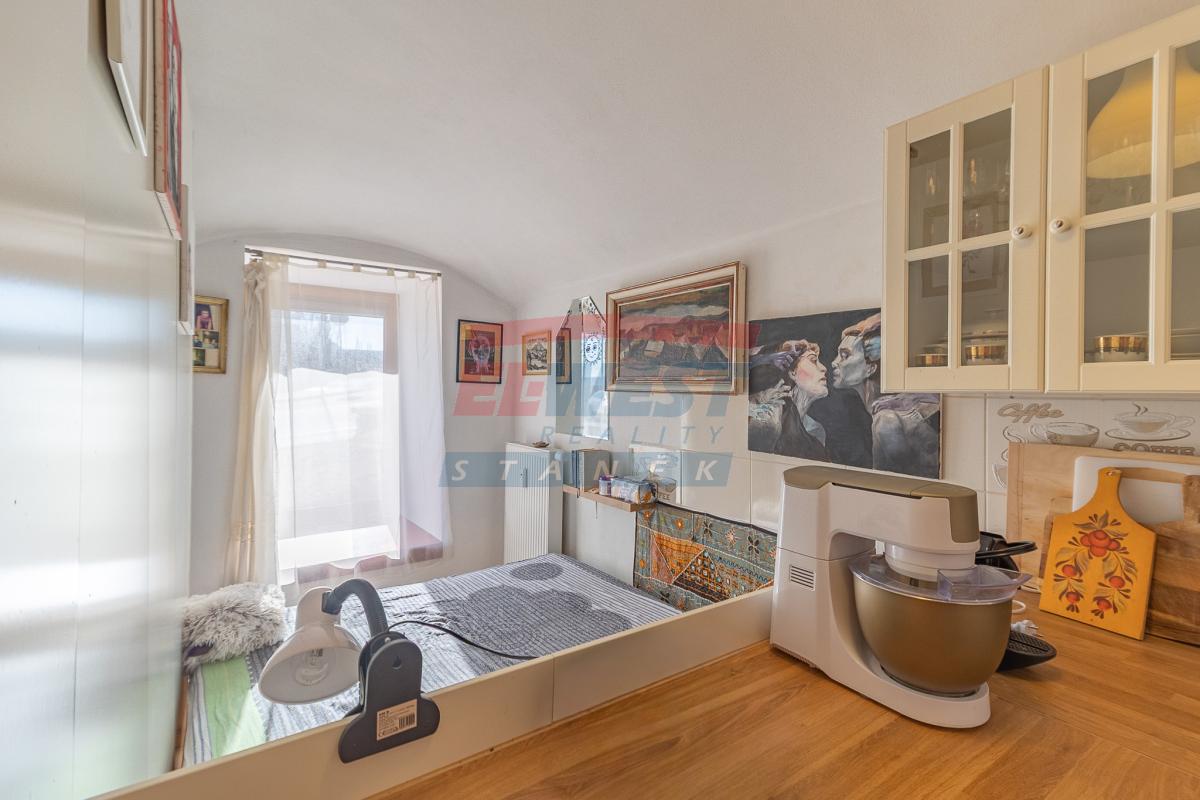 Tento apartmán byl nově rekonstruován před dvěma roky. Plně vybavený apartmán/byt nabízí vše, co potřebujete pro Vaše pohodlí a příjemné bydlení, proto jej lze využít jak k trvalému bydlení, tak pro vlastní víkendové – rekreační využití. Vnitřní dispozice 2+kk o podlahové ploše 52m2 v 1. NP: „Srdcem bytu je obývací prostor s kuchyňským koutem. Stávající předělení úložnými skříněmi nabízí praktické řešení, které lze však snadno odstranit a získat tak velkorysý, otevřený interiér.“ Součástí ložnice je i bezbariérový vstup do vnitrobloku, což interiéru dodává vzdušnost a klid. Moderně obložená koupelna (se sprchovým koutem, umyvadlem, topným žebříkem a připojením k pračce) WC. V bytě jsou plastová okna, nová podlahová krytina.