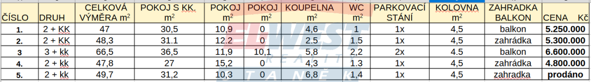 Prodej nových apartmánů