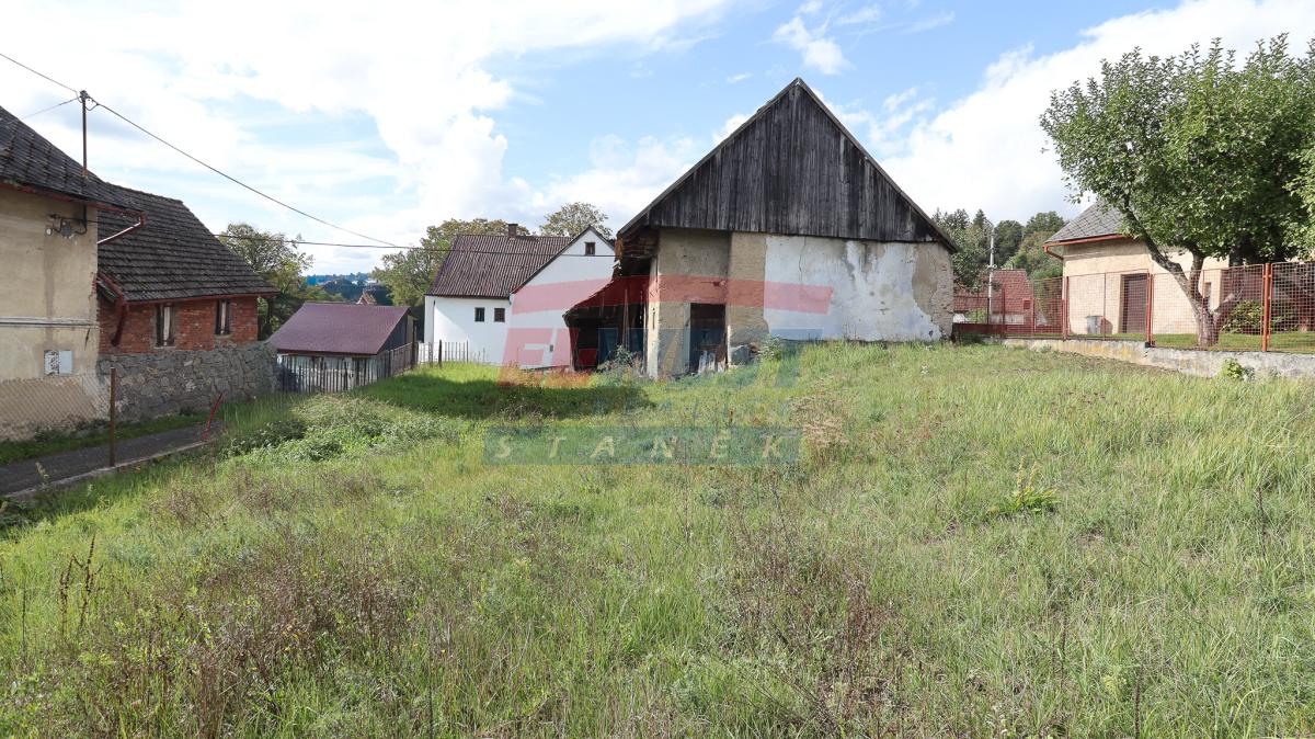 Pozemek o celkové ploše 439 m2 se stodolou o zastavěné ploše 120 m2 je ze dvou stran oplocen, zaopatřen přístupem po asfaltové cestě, kterou využívají převážně jen vlastníci sousedních domů.