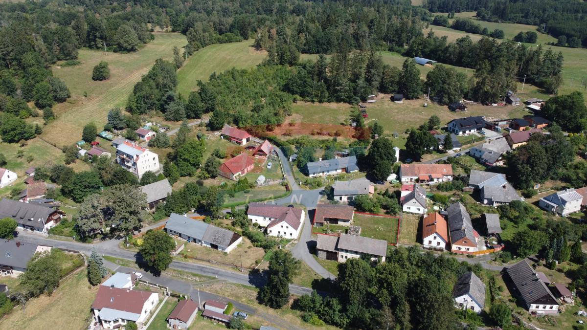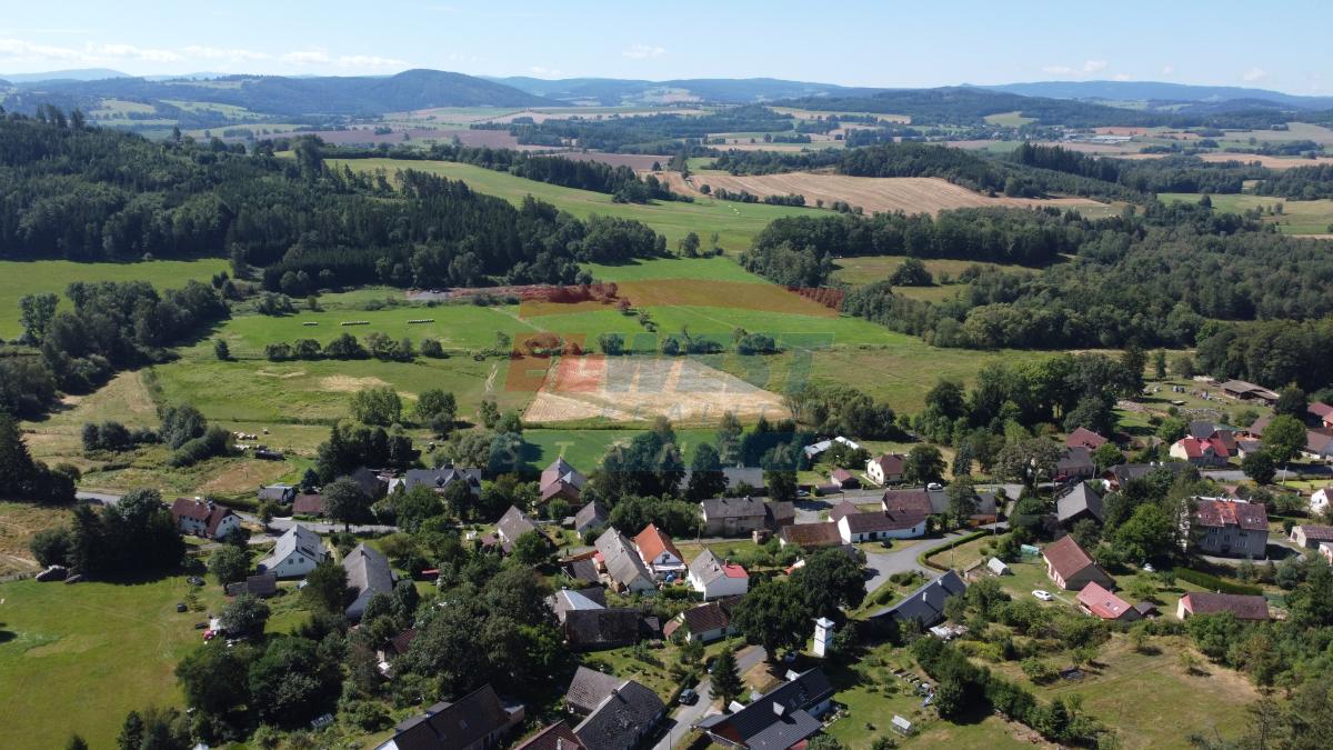 Nabízíme prodej stavebního pozemku se stodolou v malé obci Mlázovy v podhůří Šumavy mezi Klatovy a Sušicí.