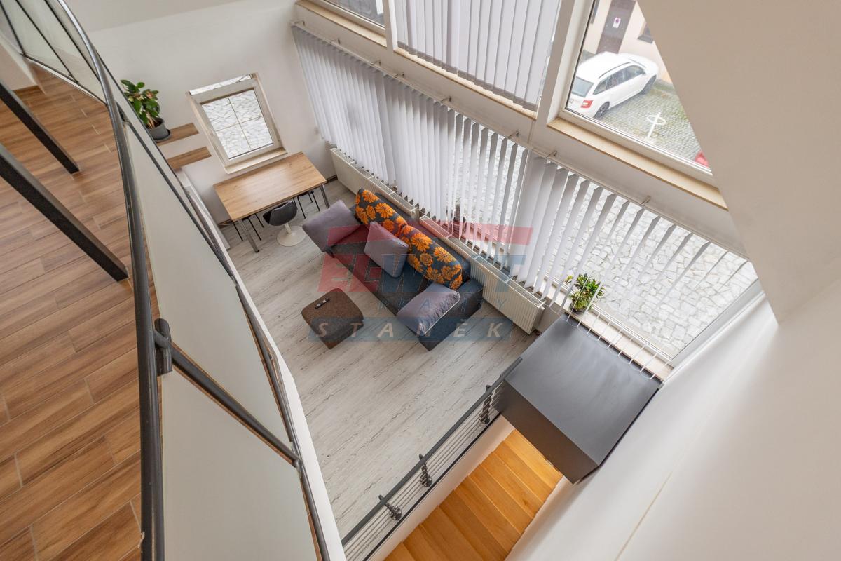 Nabízíme k pronájmu nadstandardní mezonetový byt v moderním vkusném stylu o dispozici 2+kk ve zděném domě v 1. - 2. patře v centru města Sušice. Tento byt s celkovou obytnou plochou 60 m2 vyniká právě svou volností a lehkostí v příjemném nadstandardu, zrovna tak je vybaven novější kuchyní na míru a podlahovými krytinami. Vnitřní dispozice: po schodech v I.patře o výměře 35m2: vzdušný pokoj s TV, menší sedačkou, pracovním stolem, novou kuchyní (el. sporák se sklokeramickou deskou, myčkou), koupelna s pračkou, vanou, WC a předsíňový meziprostor. V podkroví o výměře 25m2: pokoj / ložnice s úložným prostorem. Tento byt současně nabízí příjemný výhled na nábřeží s řekou a vrchol Anděla Strážného. Součástí nájmu lze využívat parkovacího stání ve dvoře domu. Vytápění ústředním topením el. kotlem s vlastním elektoměřičem. Platby spojené s užíváním bytu: nájem 14.500,-Kč/měs. (včetně vody) + zálohy na el. energii. Volné od 1.11.2025.