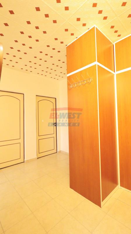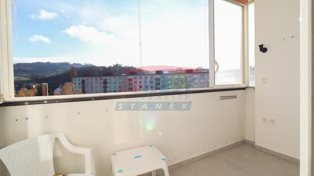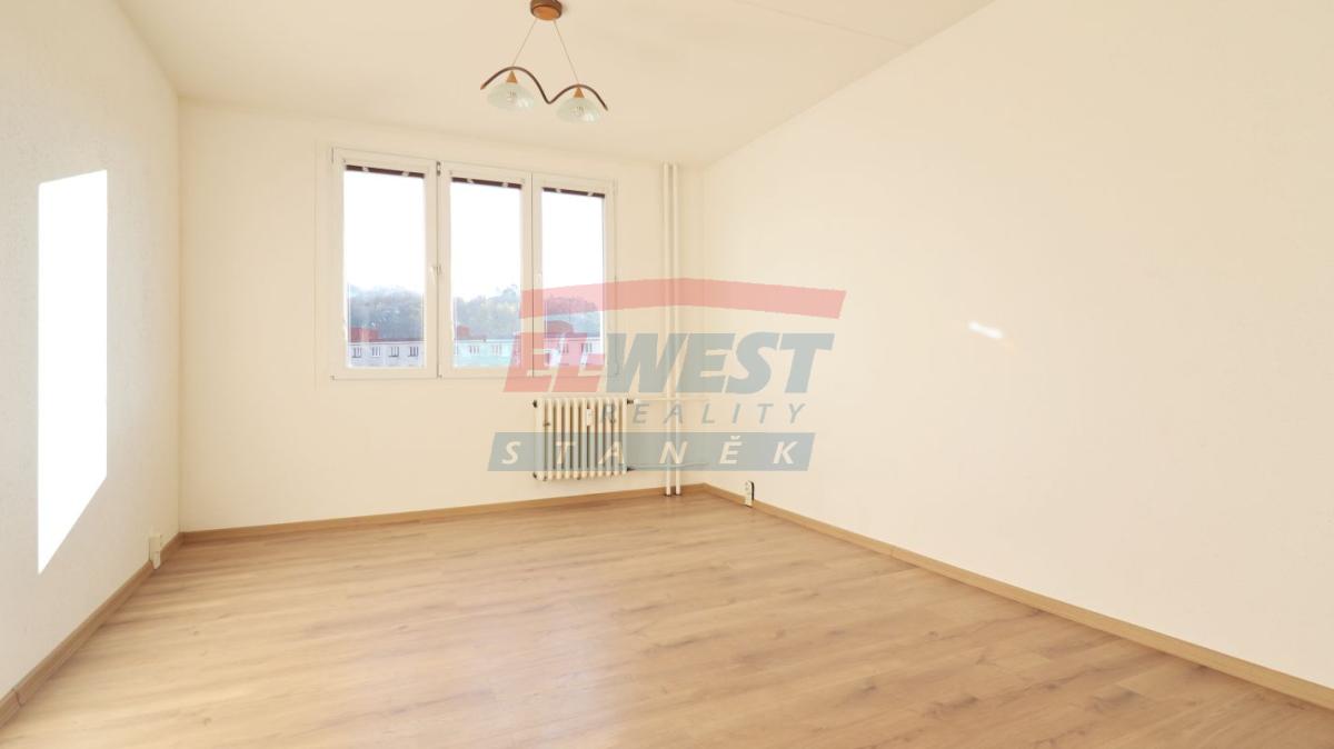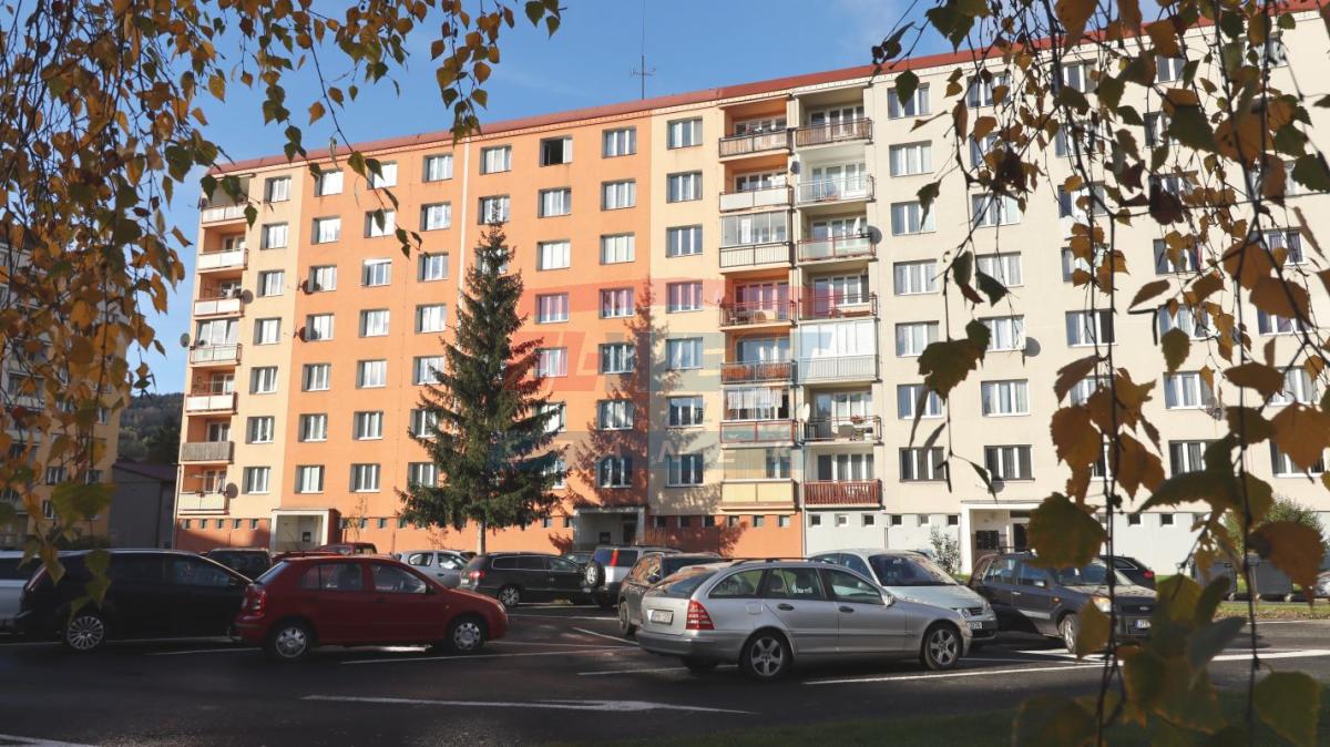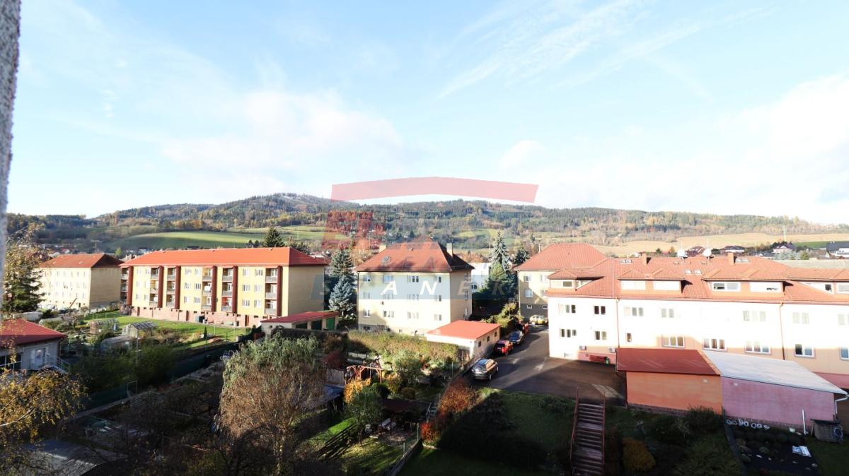 Dispozice bytu: předsíň s úložnými skříněmi (7,95 m2); kuchyně (11,27 m2) s kuchyňskou linkou, kombinovaným sporákem, myčkou a ledničkou. Kuchyně s vedlejším pokojem (20,27 m2) s orientací na západ nabízí krásné výhledy na Svatobor; obývací pokoj (16,67 m2) se zasklenou lodžií (4,80 m2) a další pokoj (16,12 m2) s výhledem na vrch Anděla Strážce (JV). Koupelna (2.60 m2) se sprchovým koutem, umyvadlem a prostorem pro pračku; samostatné WC (0.90 m2). Vytápění je dálkové ústřední, otopná tělesa jsou litinová s měřiči tepla. K bytu dále náleží sklepní kój (1,40m2) v přízemí domu a další společné prostory (sušárna, kolárna, prádelna). Celý dům je po rekonstrukci zateplení fasády, rozvody vody a odpadů, výtahu.