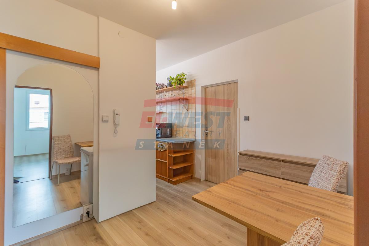 K bytu náleží komora v mezipatře domu. Dům je celý po rekonstrukci – zateplení fasády a střechy, nové vchodové dveře, zvonkové tablo, poštovní schránky. Byt je pronajímán bez nábytku.