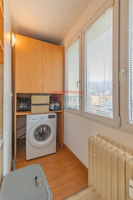 Dispozice bytu: předsíň, kuchyně s kuchyňskou linkou na míru, el. sporák s digestoří. V koupelně rohová vana, umyvadlo, topný žebřík, WC. Ložnice se zasklenou lodžií, obývací pokoj, dětský pokoj. Topení ústřední – dálkové s měřiči tepla.