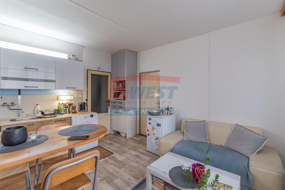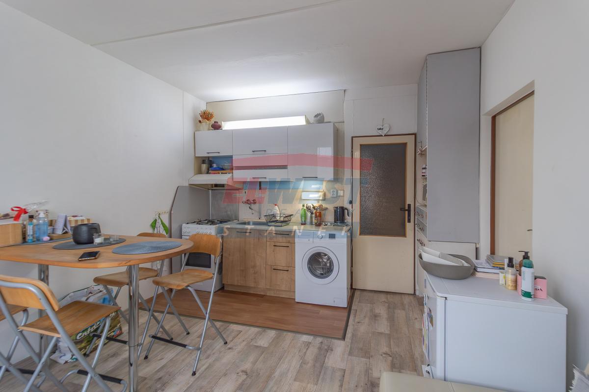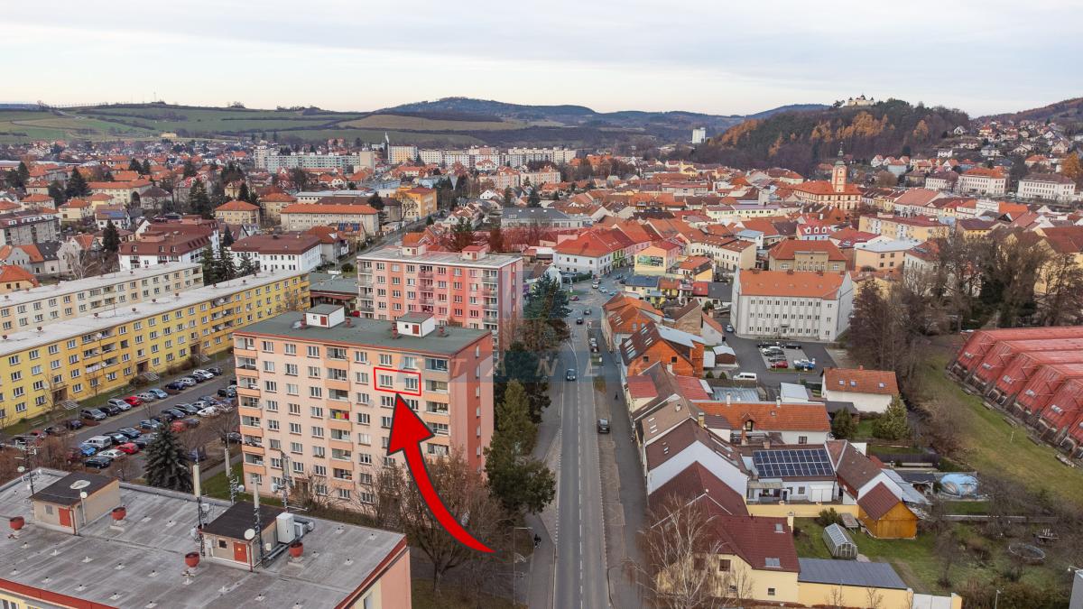 Dispozice bytu: vstupní předsíň, kuchyně s novější kuchyňskou linkou, plynovým sporákem, připojením k pračce; dále pokoj orientovaný na jihozápad. Koupelna s původním jádrem, se sprchovou vanou, umyvadlem a WC. Byt prošel výměnou plastových oken, je bez vybavení, pouze s kuchyňskou linkou včetně sporáku. K bytu náleží malá sklepní spíž a společná kolovna v suterénu domu. Dům je zateplený, byt je vyhřívaný celodenním sluncem z jihozápadní stany, odkud je i pěkný výhled.